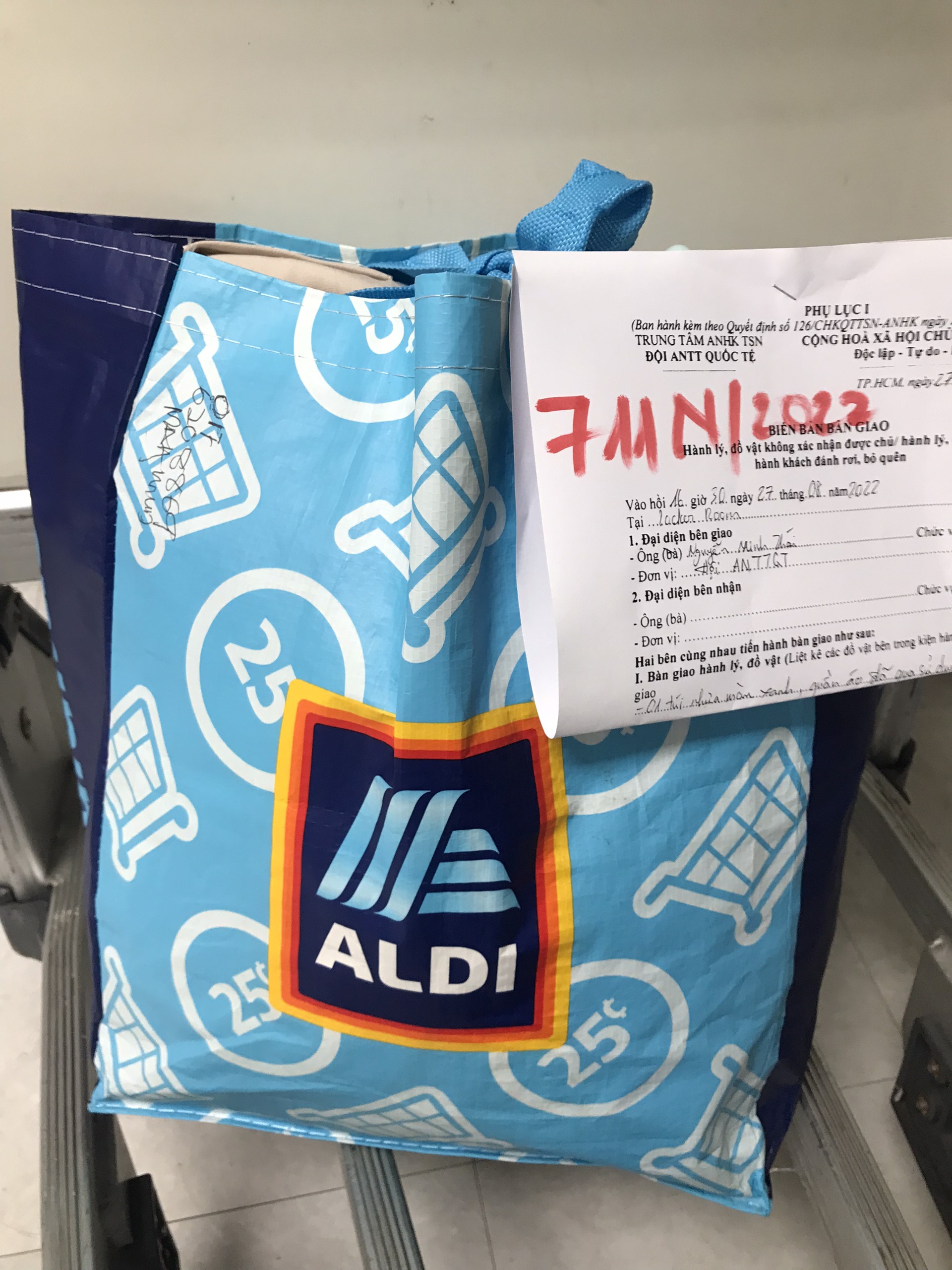 Ngày tiếp nhận: 23/8/2022 Mô tả: 01 túi xách màu trắng có 01 học bạ, 01 bằng tốt nghiệp, 01 bằng Ielts, quần áo. Vị trí: An ninh soi chiếu quốc tế |