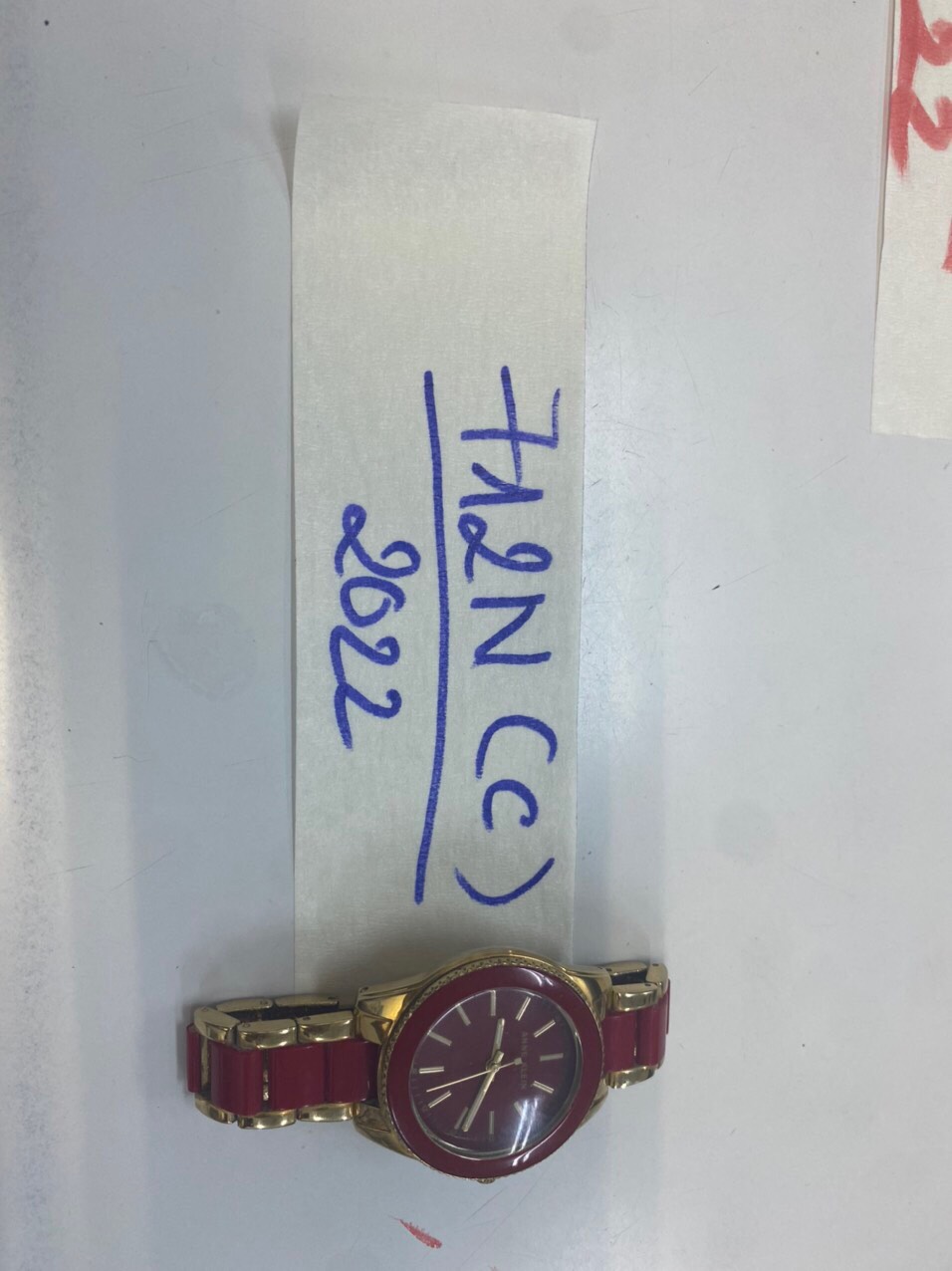 Ngày tiếp nhận: 27/8/2022 Mô tả: 01 đồng hồ màu đỏ ANNE KLEIN. Vị trí: An ninh soi chiếu quốc nội |