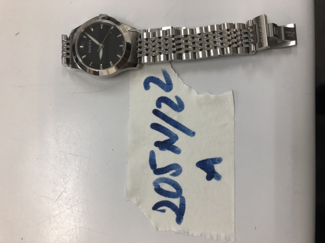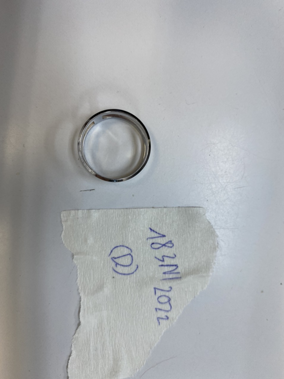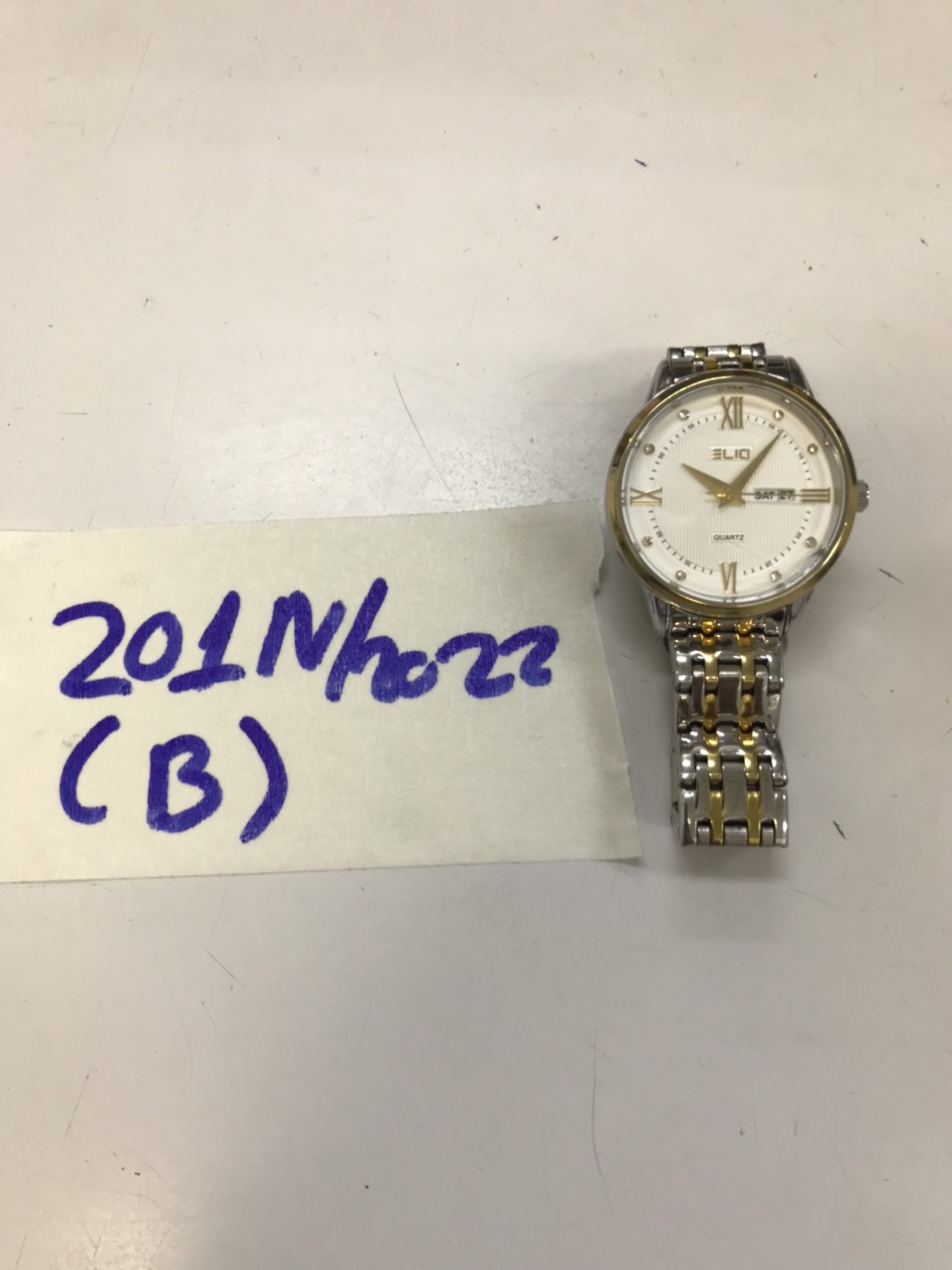 Ngày tiếp nhận: 30/04/2022 Mô tả: 01 đồng hồ kim loại màu trắng có chữ ELIO Vị trí: An ninh soi chiếu quốc nội |