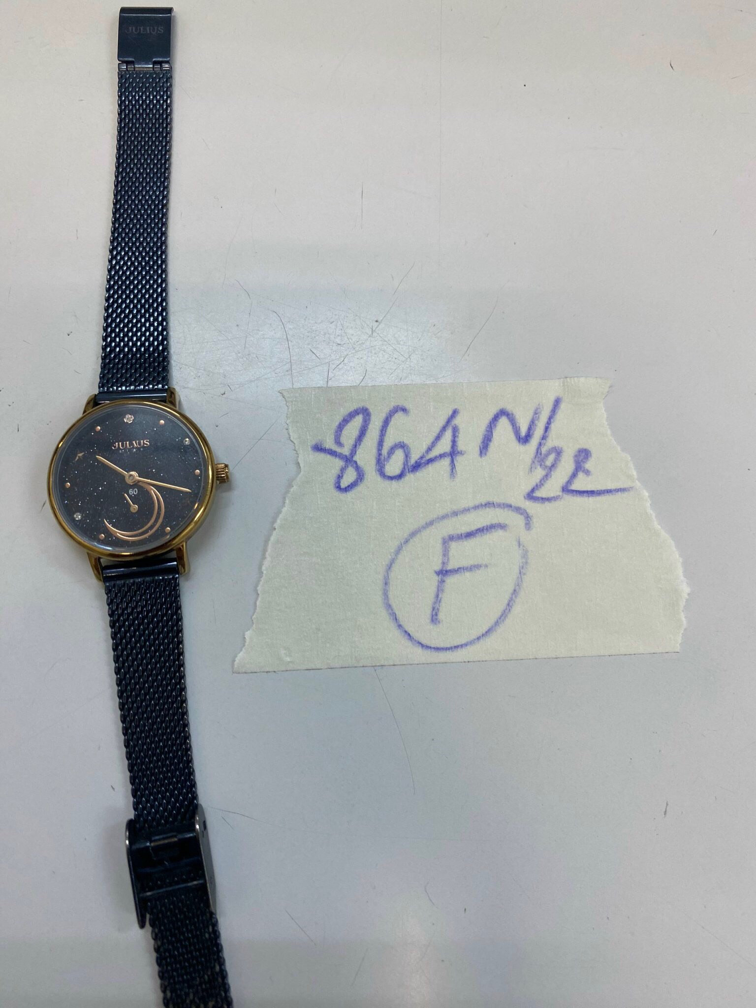 Ngày tiếp nhận: 27/9/2022 Mô tả: 01 đồng hồ kim loại đen Jullus. Vị trí: An ninh soi chiếu quốc nội |
