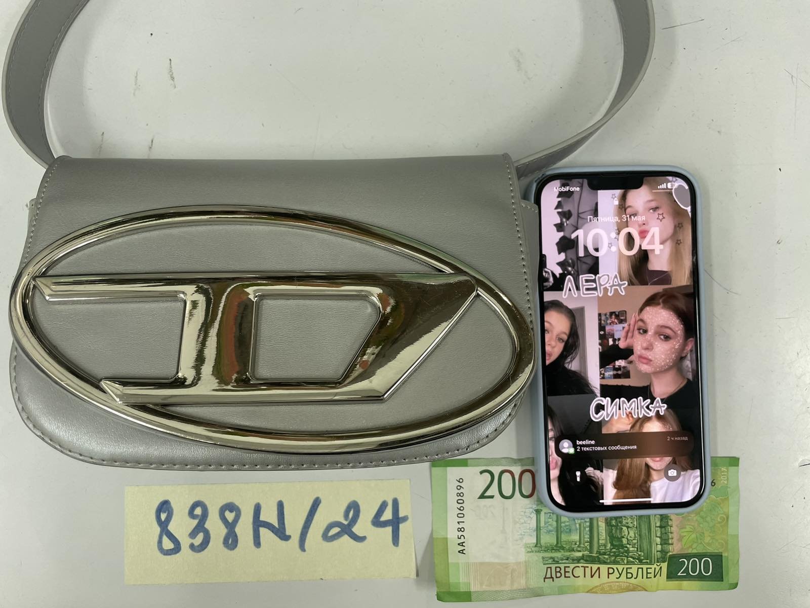 Ngày tiếp nhận: 31/5/2024 Mã hồ sơ: 838N2024 Mô tả: 01 túi đeo nữ màu xám bên trong 01 điện thoại Iphone 12 Pro màu đen đã qua sử dụng, 200 rup. |