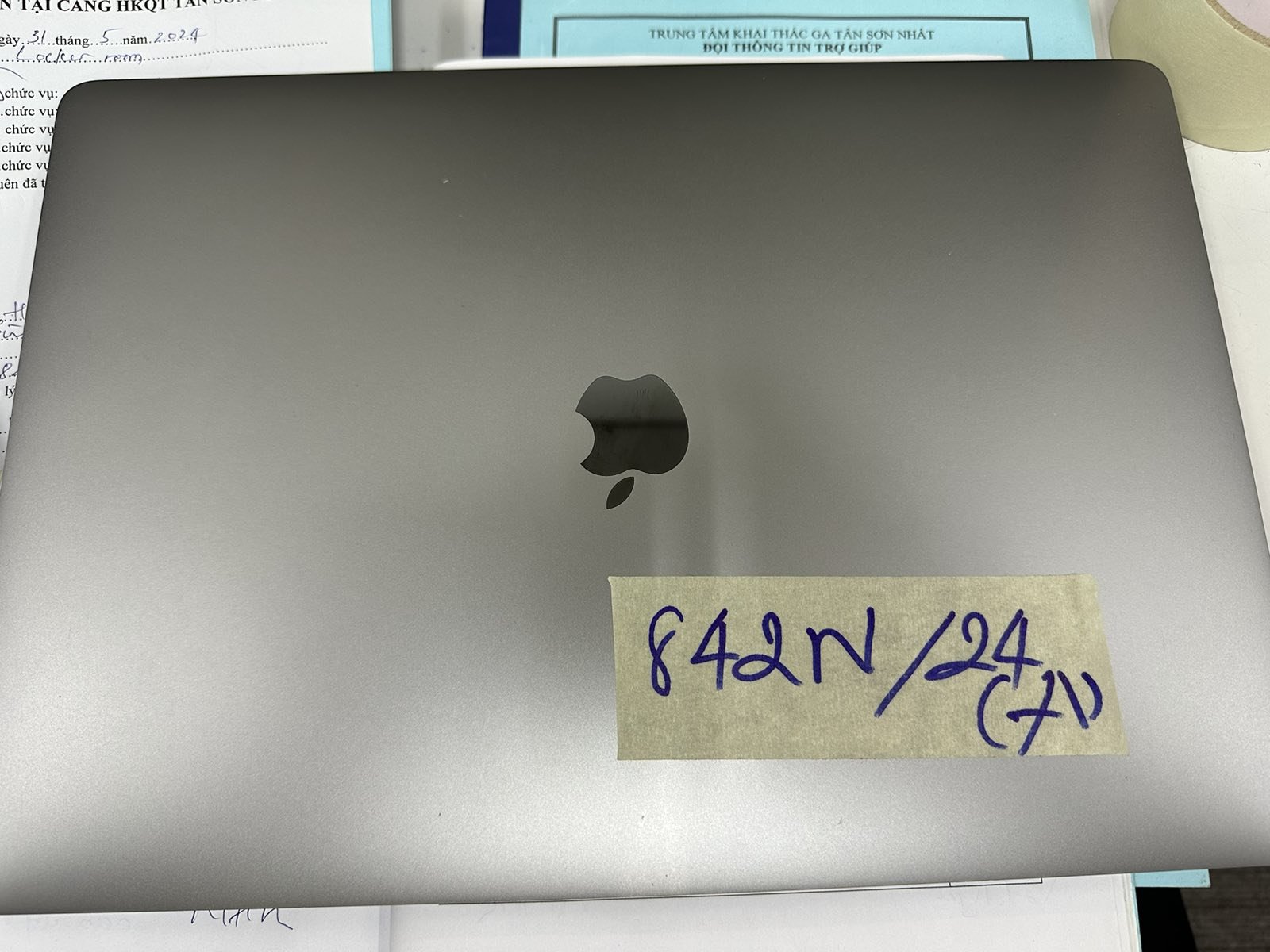 Ngày tiếp nhận: 31/5/2024 Mã hồ sơ: 842N2024A Mô tả: 01 máy tính xách tay Macbook Pro màu bạc. |