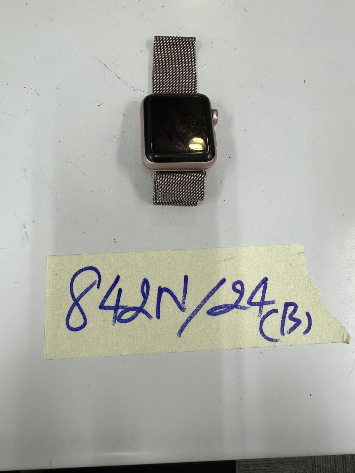 Ngày tiếp nhận: 31/5/2024 Mã hồ sơ: 842N2024B Mô tả: 01 đồng hồ thông minh dây đeo kim loại màu tím. |