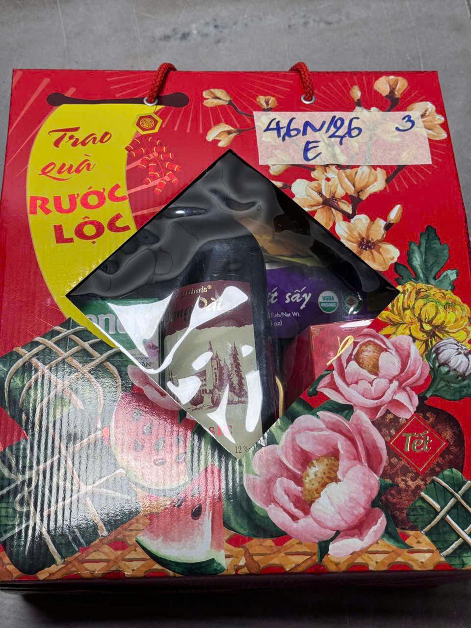 Ngày tiếp nhận: 03/02/2026 Mã hồ sơ: 46N2026E-T3 Mô tả: 01 túi giấy màu đỏ (có rượu và bánh). |