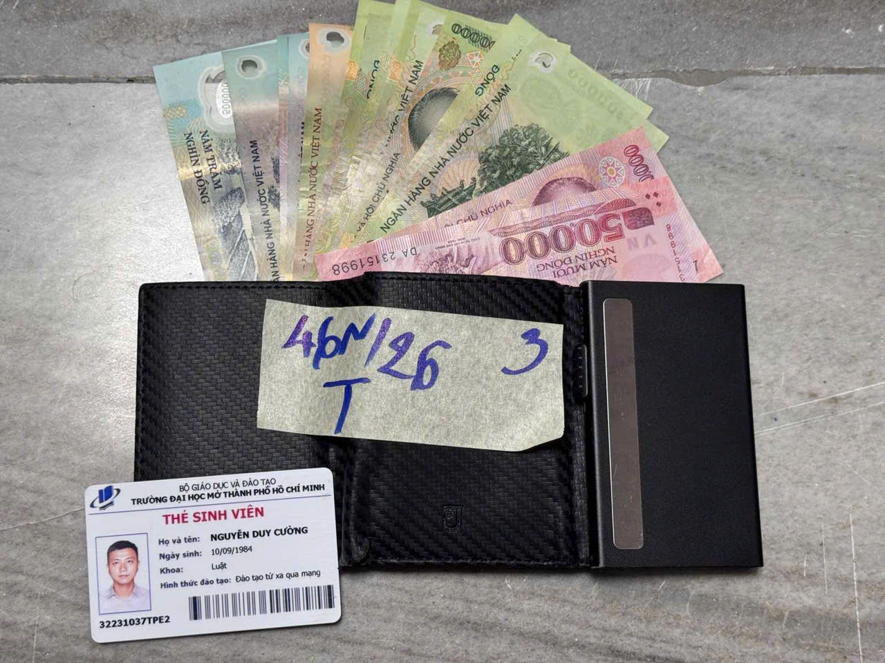 Ngày tiếp nhận: 03/02/2026 Mã hồ sơ: 46N2026T-T3 Mô tả: 01 ví da màu đen có 3.200.000 VND, 05 thẻ ngân hàng, 01 thẻ sinh viên tên: NGUYỄN DUY CƯỜNG. |