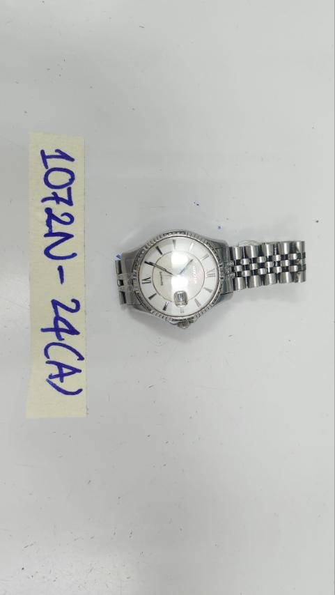 Ngày tiếp nhận: 06/7/2024 Mã hồ sơ: 1072N2024A Mô tả: 01 đồng hồ dây kim loại màu trắng, mặt tròn có chữ Nakzen trên mặt đồng hồ. |