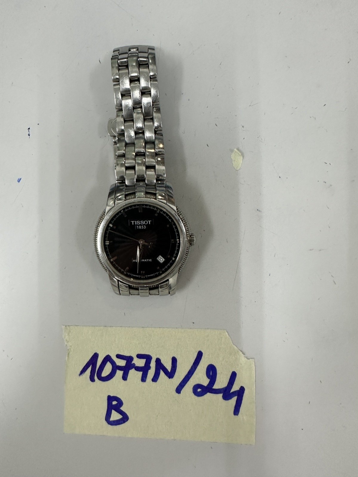 Ngày tiếp nhận: 07/7/2024 Mã hồ sơ: 1077N2024B Mô tả: 01 đồng hồ màu bạc mặt màu đen hiệu TISSOT. |