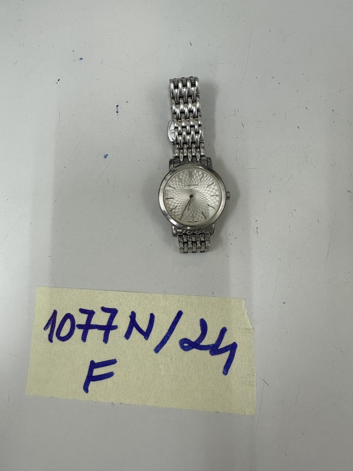 Ngày tiếp nhận: 07/7/2024 Mã hồ sơ: 1077N2024F Mô tả: 01 đồng hồ màu bạc hiệu LONGINES. |