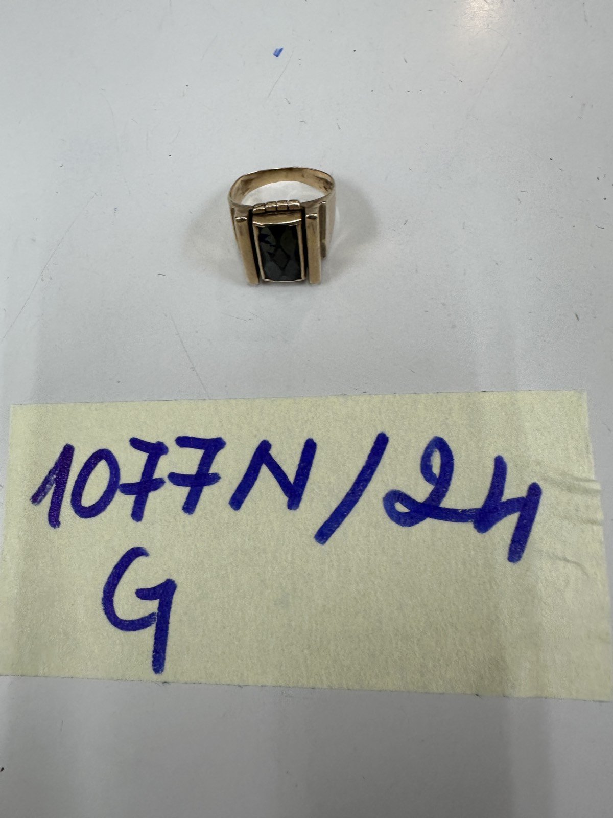 Ngày tiếp nhận: 07/7/2024 Mã hồ sơ: 1077N2024G Mô tả: 01 nhẫn màu vàng có mặt màu đen. |