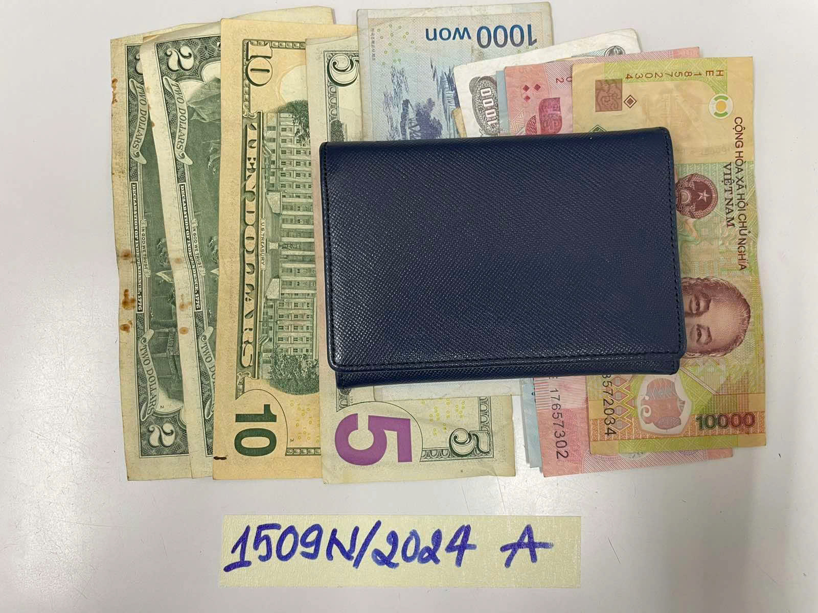 Ngày tiếp nhận: 06/9/2024 Mã hồ sơ: 1509N2024A Mô tả: 01 ví màu xanh dương, chữ LUCASTER bên trong chứa 83,000 vnđ, 19 USD; 1000 WON; GPLX và thẻ VISA mang tên THÂN NGUYEN THU UYÊN. |