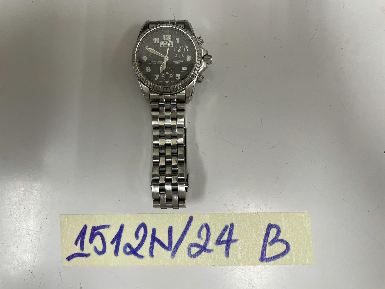 Ngày tiếp nhận: 06/9/2024 Mã hồ sơ: 1512N2024B Mô tả: 01 đồng hồ màu bạc, dây đeo kim loại màu bạc, có logo chữ "SECTOR 900". |