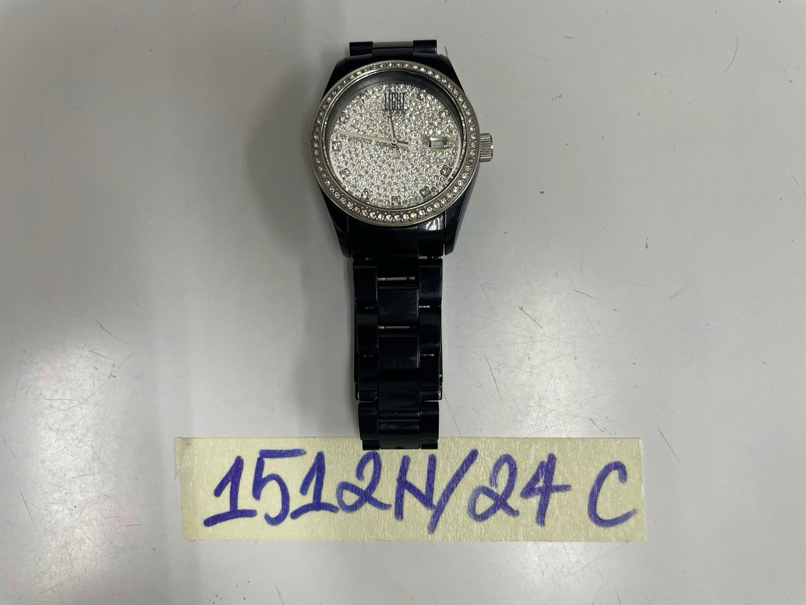 Ngày tiếp nhận: 06/9/2024 Mã hồ sơ: 1512N2024C Mô tả: 01 đồng hồ màu đen có đính hạt, dây đeo kim loại màu đen, có logo chữ "LIGHT TIME". |