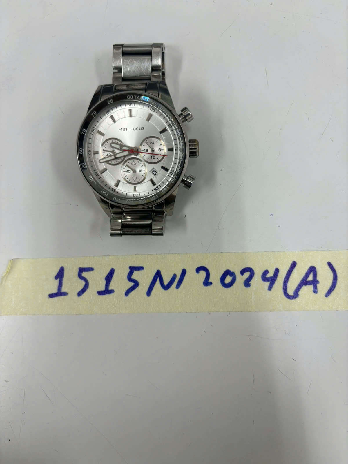 Ngày tiếp nhận: 06/9/2024 Mã hồ sơ: 1515N2024A Mô tả: 01 đồng hồ kim loại màu bạc, có chữ MINI FOCUS trên mặt. |