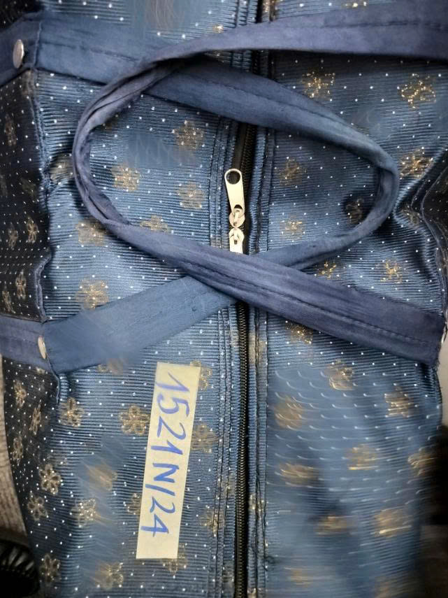 Ngày tiếp nhận: 08/9/2024 Mã hồ sơ: 1521N2024 Mô tả: 01 Túi vải xách tay màu xanh đã qua sử dụng bên trong có quần áo và đồ dùng cá nhân. |