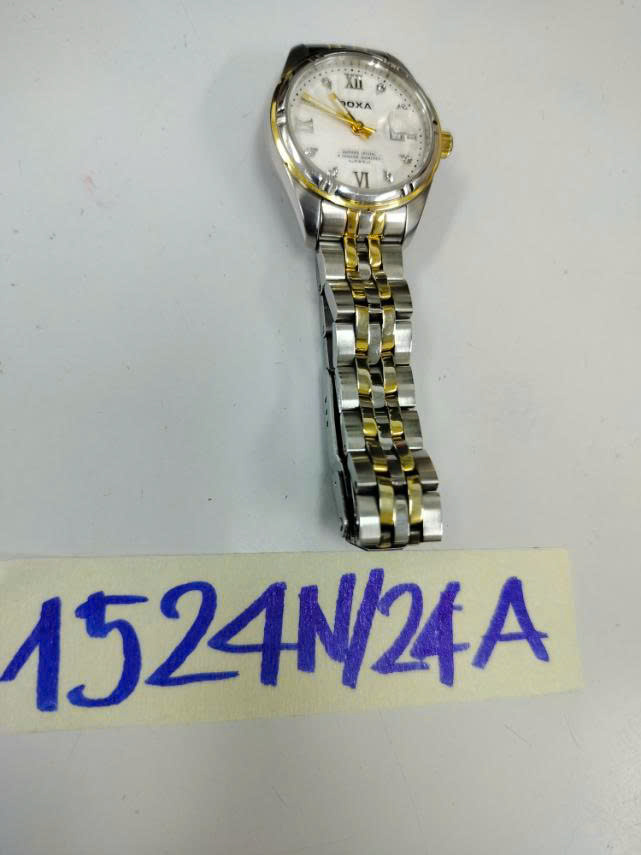 Ngày tiếp nhận: 09/9/2024 Mã hồ sơ: 1524N2024A Mô tả: 01 đồng hồ kim loại mặt tròn, có dây kim loại, trong mặt đồng hồ có chữ "DOXA". |