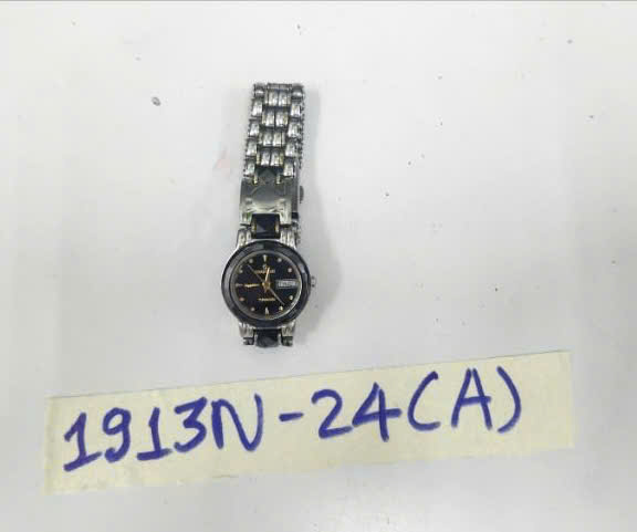 Ngày tiếp nhận: 08/11/2024 Mã hồ sơ: 1913N2024A Mô tả: 01 đồng hồ kim loại mặt tròn màu đen, có ghi chữ "ESSENGE" đã qua sử dụng. |