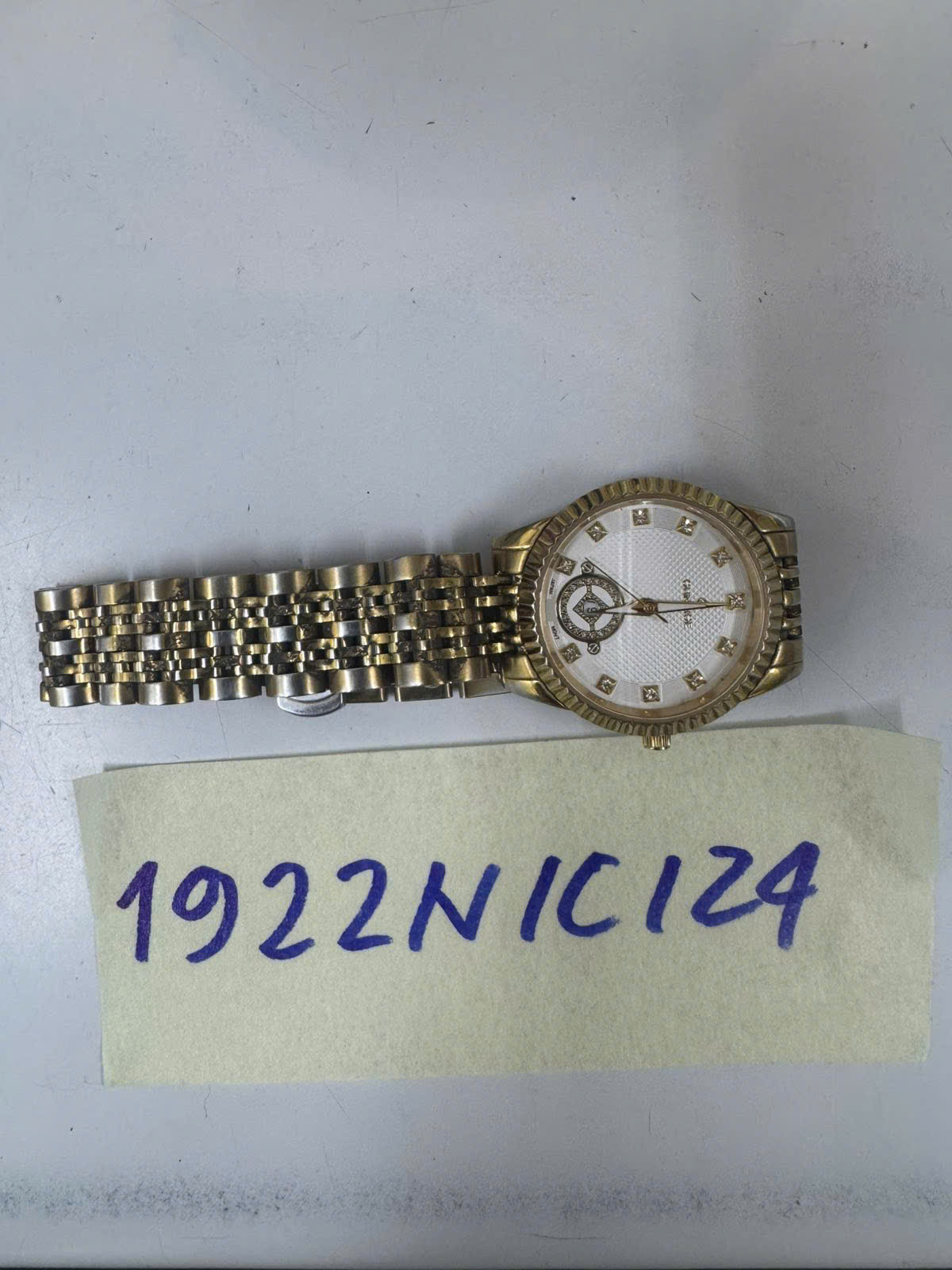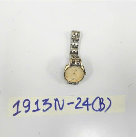 Ngày tiếp nhận: 08/11/2024 Mã hồ sơ: 1913N2024B Mô tả: 01 đồng hồ kim loại màu vàng, mặt trong đồng hồ có chữ "SUNRISE" (đã qua sử dụng). |