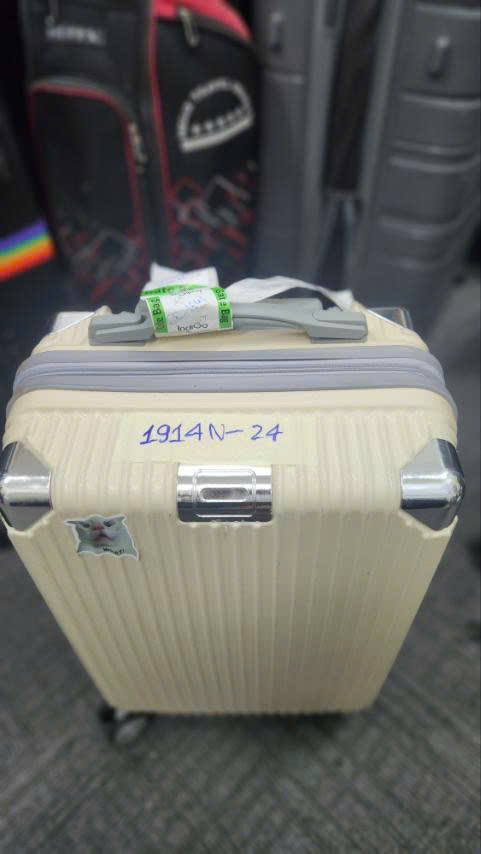Ngày tiếp nhận: 08/11/2024 Mã hồ sơ: 1914N2024 Mô tả: 01 vali kéo bằng nhựa màu vàng có khóa. |