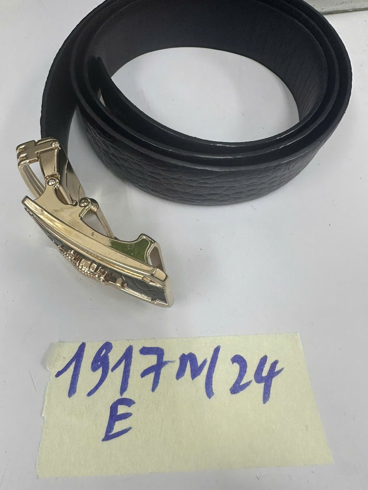 Ngày tiếp nhận: 08/11/2024 Mã hồ sơ: 1917N2024E Mô tả: 01 Dây lưng màu đen, mặt màu vàng có hình cá sấu. |