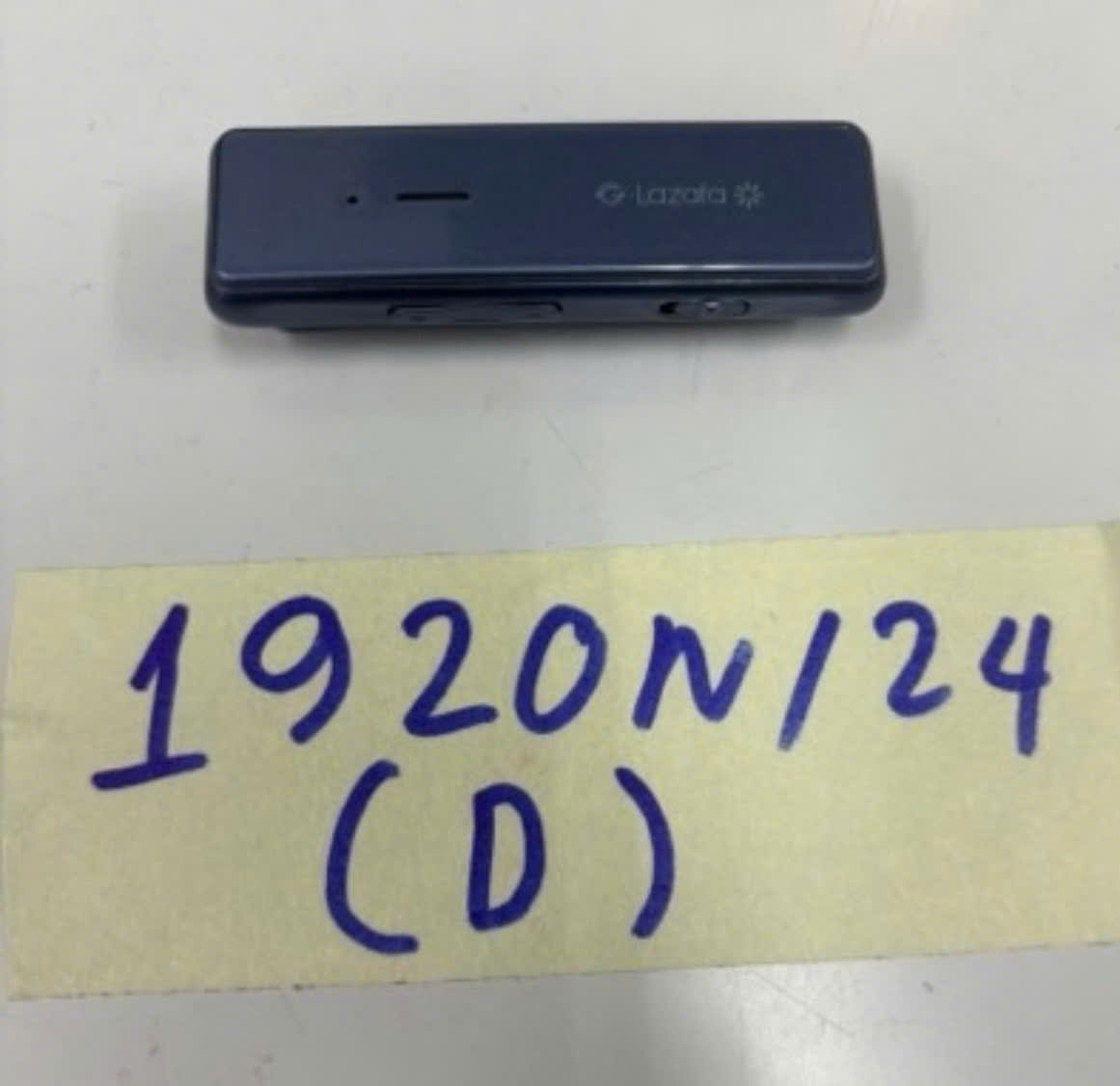 Ngày tiếp nhận: 09/11/2024 Mã hồ sơ: 1920N2024D Mô tả: 01 máy ghi âm màu xanh xám có chữ "Lazata" (đã qua sử dụng). |