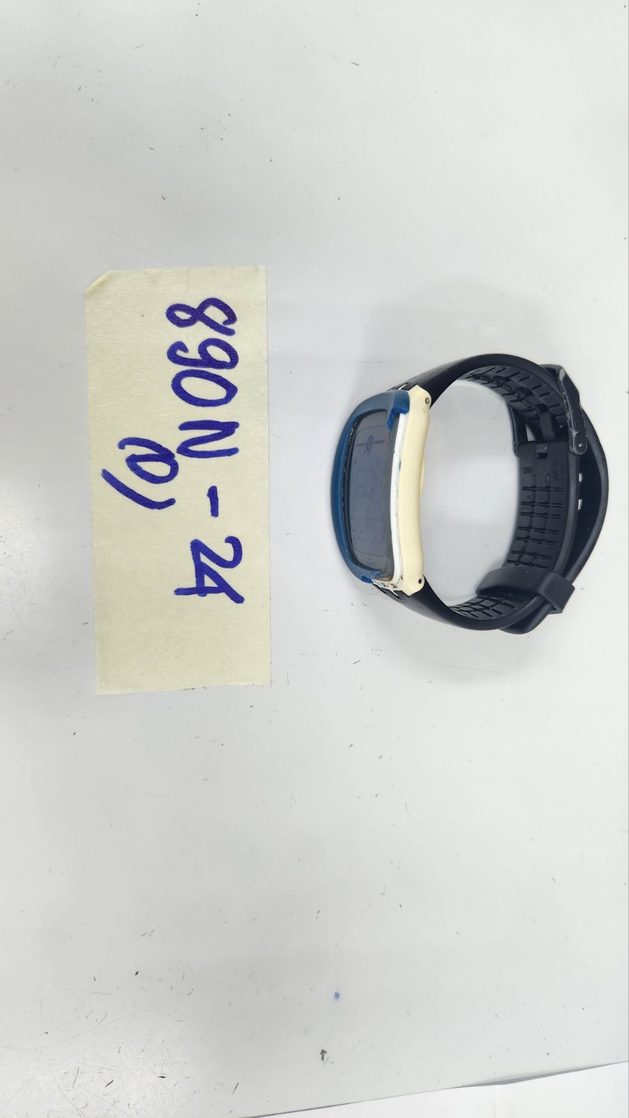 Ngày tiếp nhận: 08/6/2024 Mã hồ sơ: 890N2024D Mô tả: 01 đồng hồ mặt chữ nhật màu xanh/ trắng có chữ Swatch, dây đeo bằng cao su màu đen. |