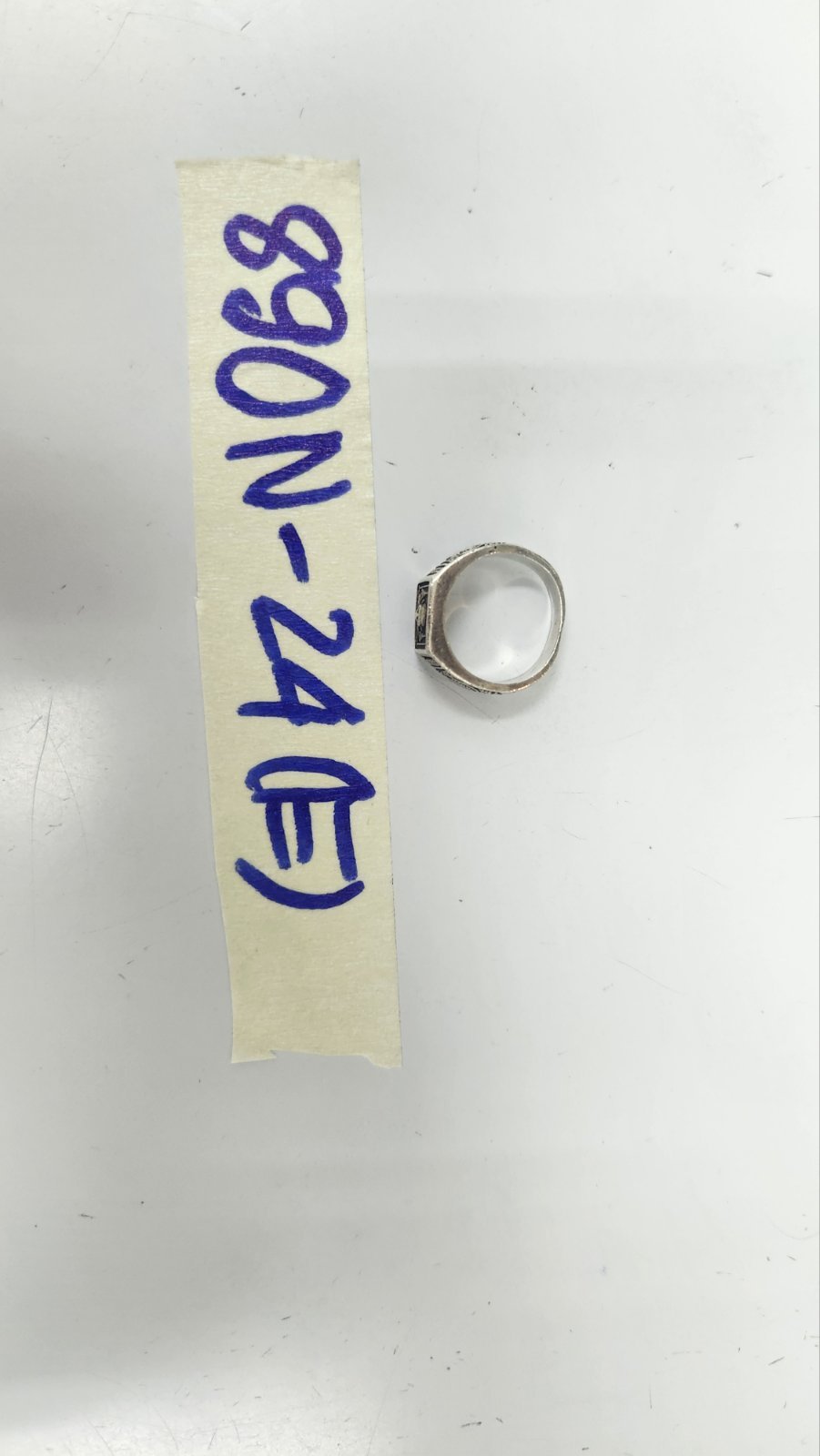 Ngày tiếp nhận: 08/6/2024 Mã hồ sơ: 890N2024E Mô tả: 01 nhẫn bằng kim loại có chữ thái lan và hình Phật. |