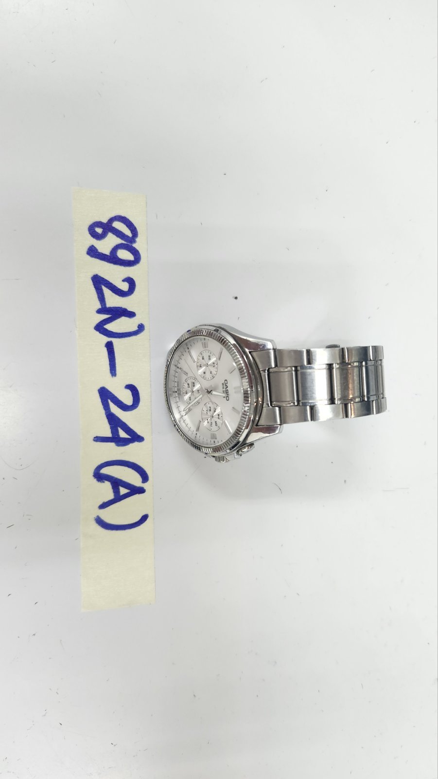Ngày tiếp nhận: 08/6/2024 Mã hồ sơ: 892N2024A Mô tả: 01 đồng hồ có chữ CASIO mặt màu trắng, dây đeo bằng kim loại màu trắng. |
