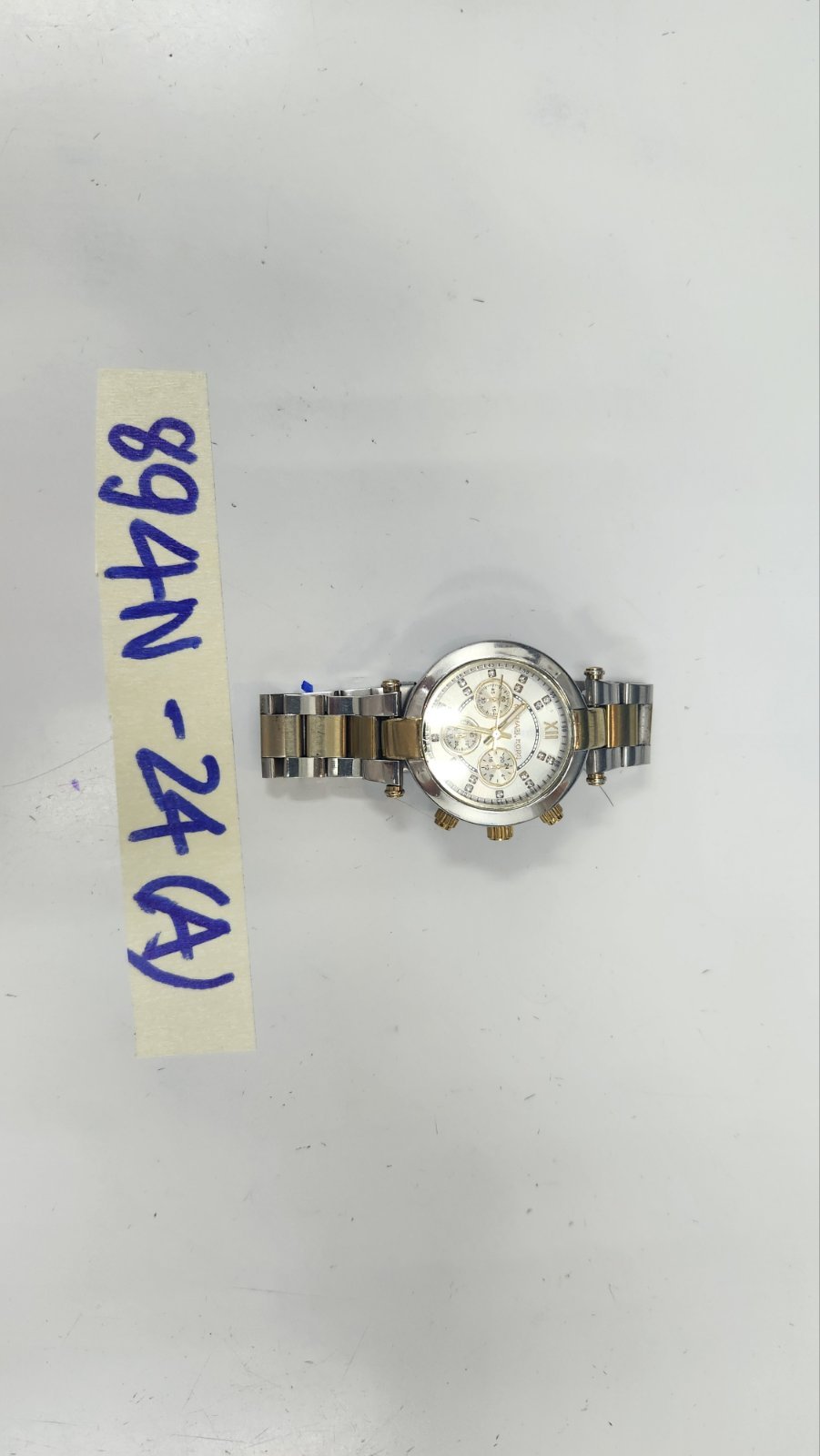 Ngày tiếp nhận: 08/6/2024 Mã hồ sơ: 894N2024A Mô tả: 01 đồng hồ hiệu MICHAEL KORS mặt màu bạc, hình tròn, dây màu bạc. |