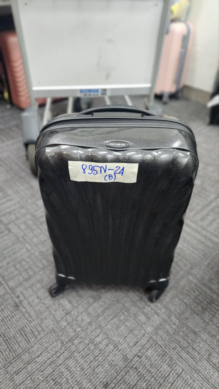 Ngày tiếp nhận: 08/6/2024 Mã hồ sơ: 895N2024B Mô tả: 01 valy nhựa màu xám đóng logo chữ SAMSONITE đã khóa. |
