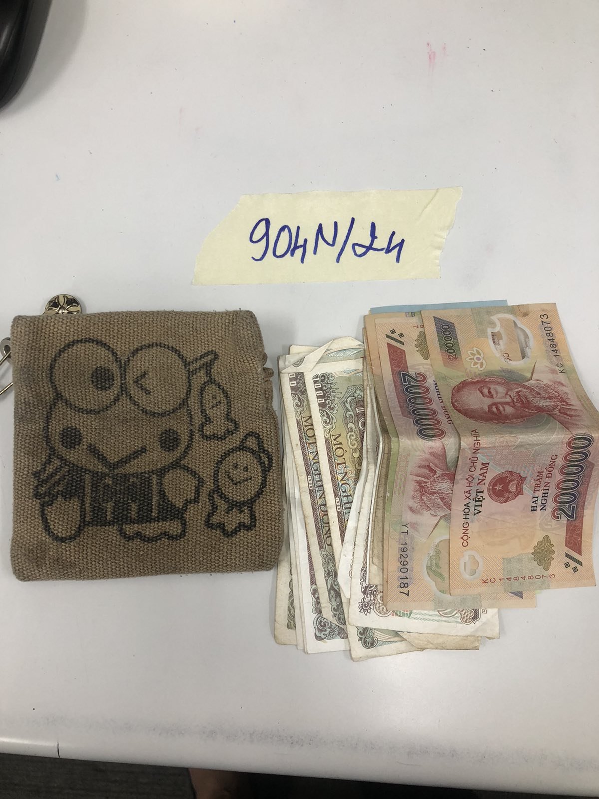 Ngày tiếp nhận: 10/6/2024 Mã hồ sơ: 904N2024 Mô tả: 01 Ví nhỏ cầm tay bằng vải màu xám có 811.000 vnđ. |