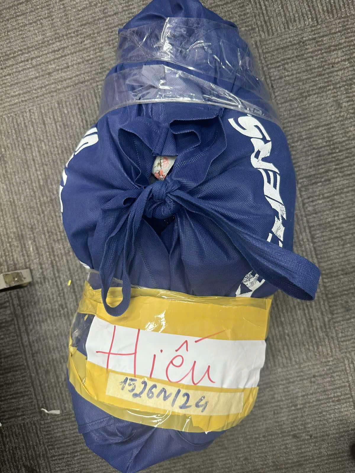 Ngày tiếp nhận: 10/9/2024 Mã hồ sơ: 1526N2024 Mô tả: 01 túi vải màu xanh bên trong quần áo và đồ dùng cá nhân. |
