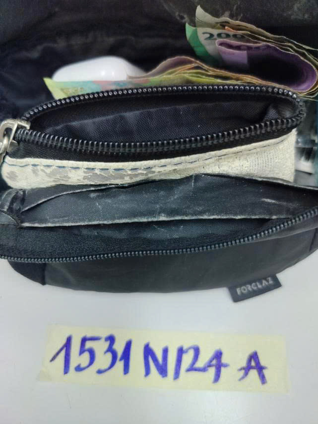 Ngày tiếp nhận: 11/9/2024 Mã hồ sơ: 1531N2024A Mô tả: 01 túi nhỏ bằng vải màu đen may logo FORCLAZ bên trong gồm: một số tờ tiền có tổng mệnh giá 40,000 IDR; 02 thẻ nhựa VISA có tên CHARLES JUBEAU, 01 thẻ nhựa VISA có tên LEONIE CALLIER, 01 thẻ nhựa mang tên JUBEAU CHARLES CLAUDE DANIEL PHILIPPE. |