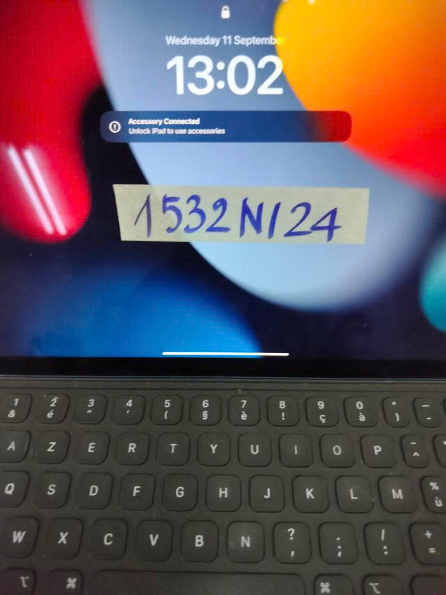 Ngày tiếp nhận: 11/9/2024 Mã hồ sơ: 1532N2024 Mô tả: 01 máy tính bảng IPAD kèm bàn phím. |