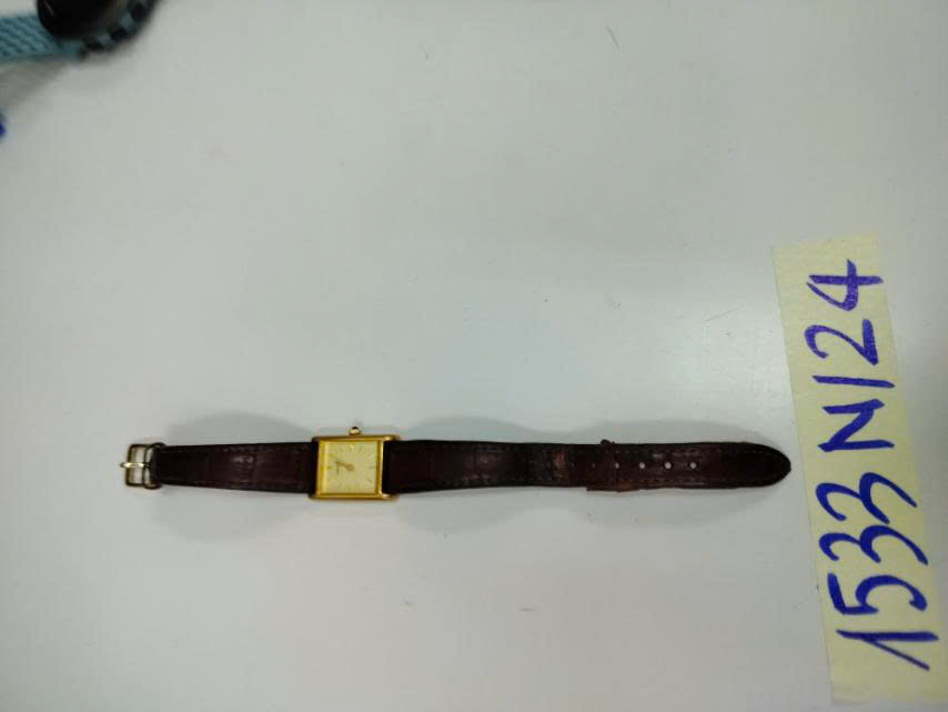 Ngày tiếp nhận: 11/9/2024 Mã hồ sơ: 1533N2024 Mô tả: 01 đồng hồ mặt hình chữ nhật màu vàng cos chữ SEIKO dây đeo bằng da màu nâu mặt sau đồng hồ có dây số 271577. |
