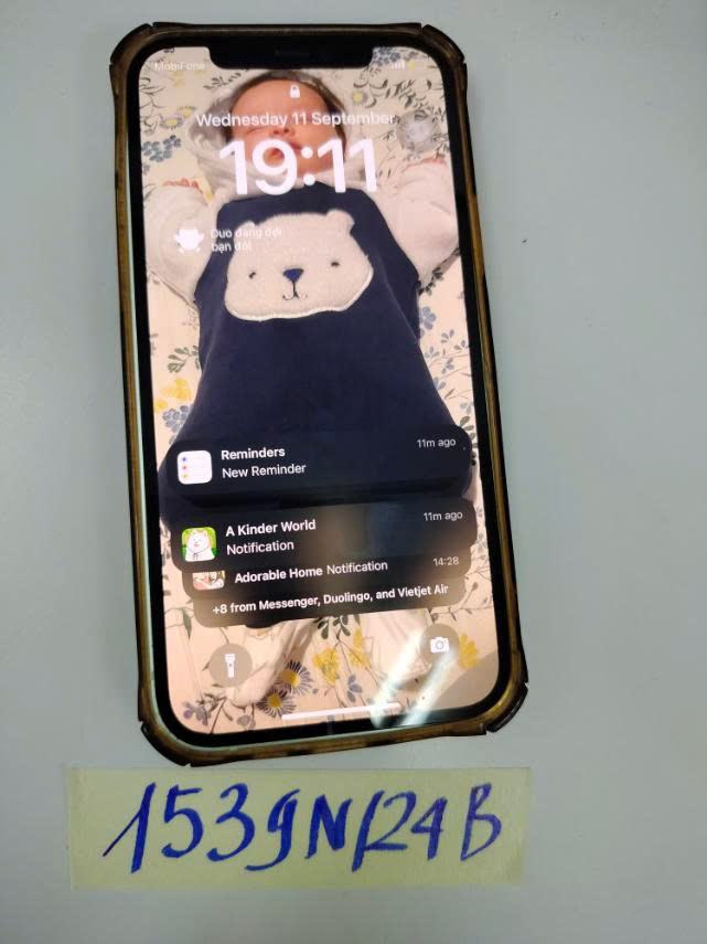 Ngày tiếp nhận: 11/9/2024 Mã hồ sơ: 1539N2024B Mô tả: 01 điện thoại logo Iphone màu xanh lá, ốp nhựa trong có cài mật khẩu. |