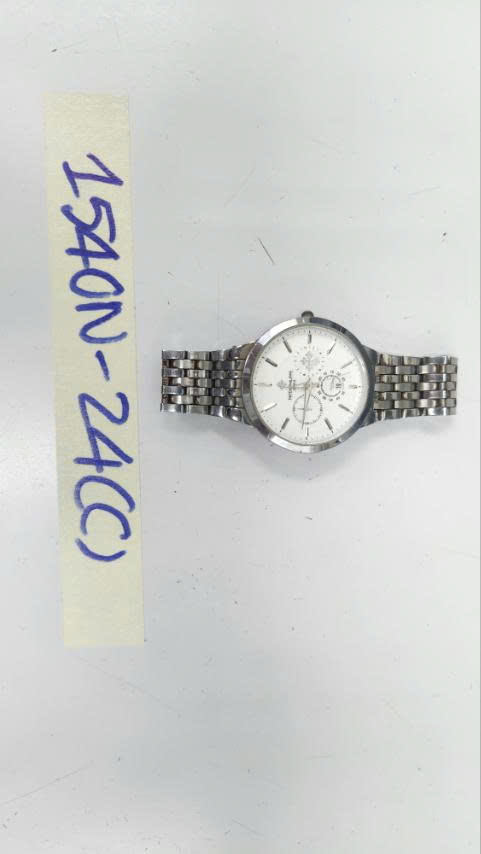 Ngày tiếp nhận: 11/9/2024 Mã hồ sơ: 1540N2024C Mô tả: 01 đồng hồ dây kim loại màu trắng mặt đồng hồ hình tròn có chữ PATEK PHILIPPE. |