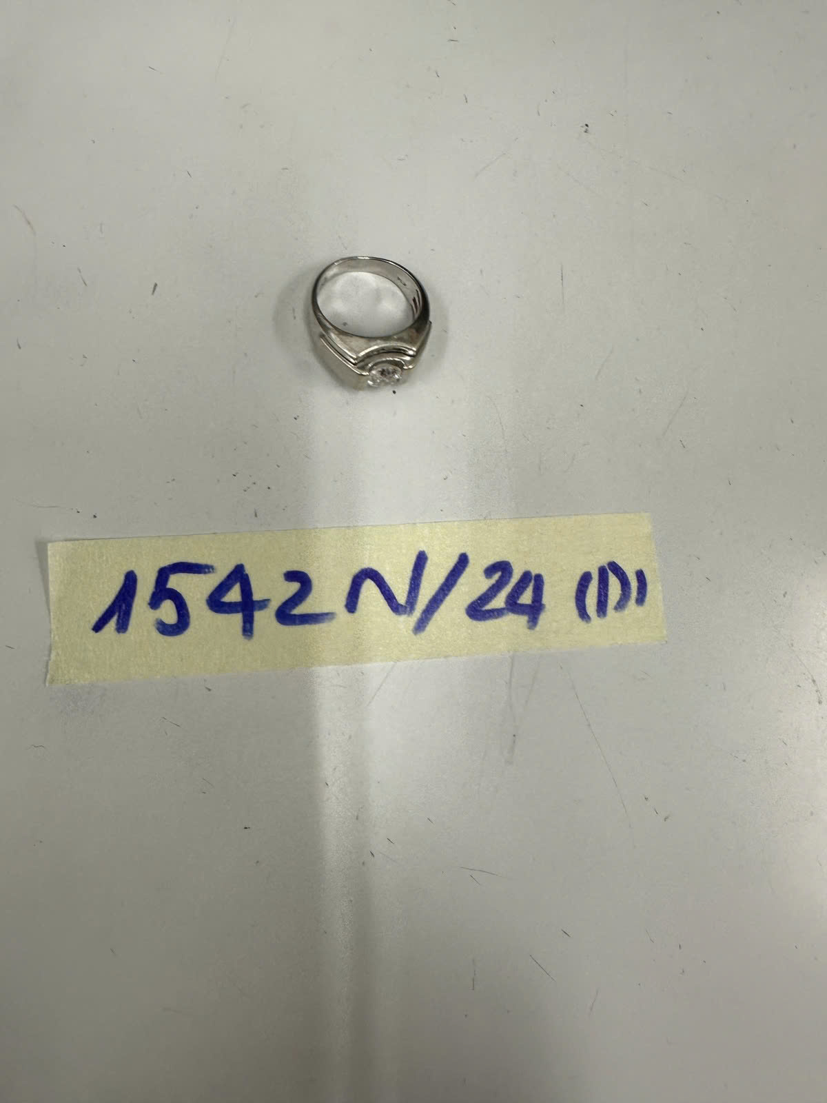 Ngày tiếp nhận: 12/9/2024 Mã hồ sơ: 1542N2024D Mô tả: 01 nhẫn kim loại màu trắng có hạt màu trắng. |