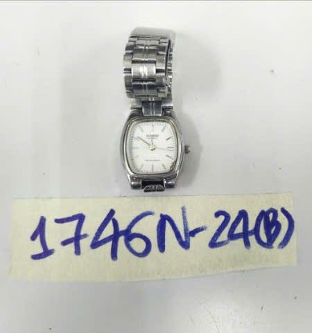 Ngày tiếp nhận: 12/10/2024 Mã hồ sơ: 1746N2024B Mô tả: 01 Đồng hồ kim loại có chữ "Casio", dây kim lại màu trắng. |