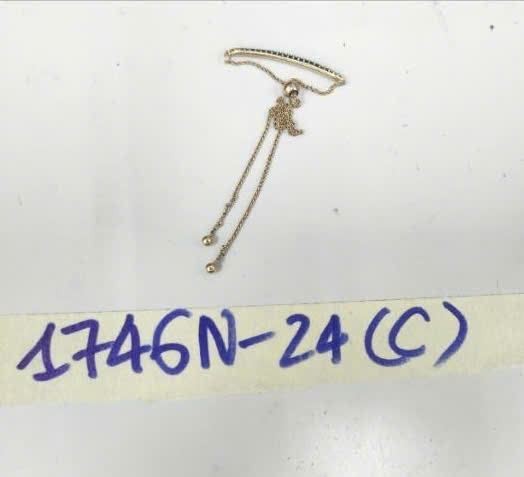 Ngày tiếp nhận: 12/10/2024 Mã hồ sơ: 1746N2024C Mô tả: 01 Lắc tay nữ kim loại máu vàng, có đính hạt màu đen. |