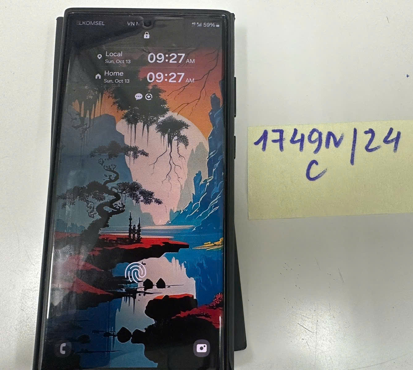 Ngày tiếp nhận: 13/10/2024 Mã hồ sơ: 1749N2024C Mô tả: 01 điện thoại đi động màu đen in logo SAMSUNG. |