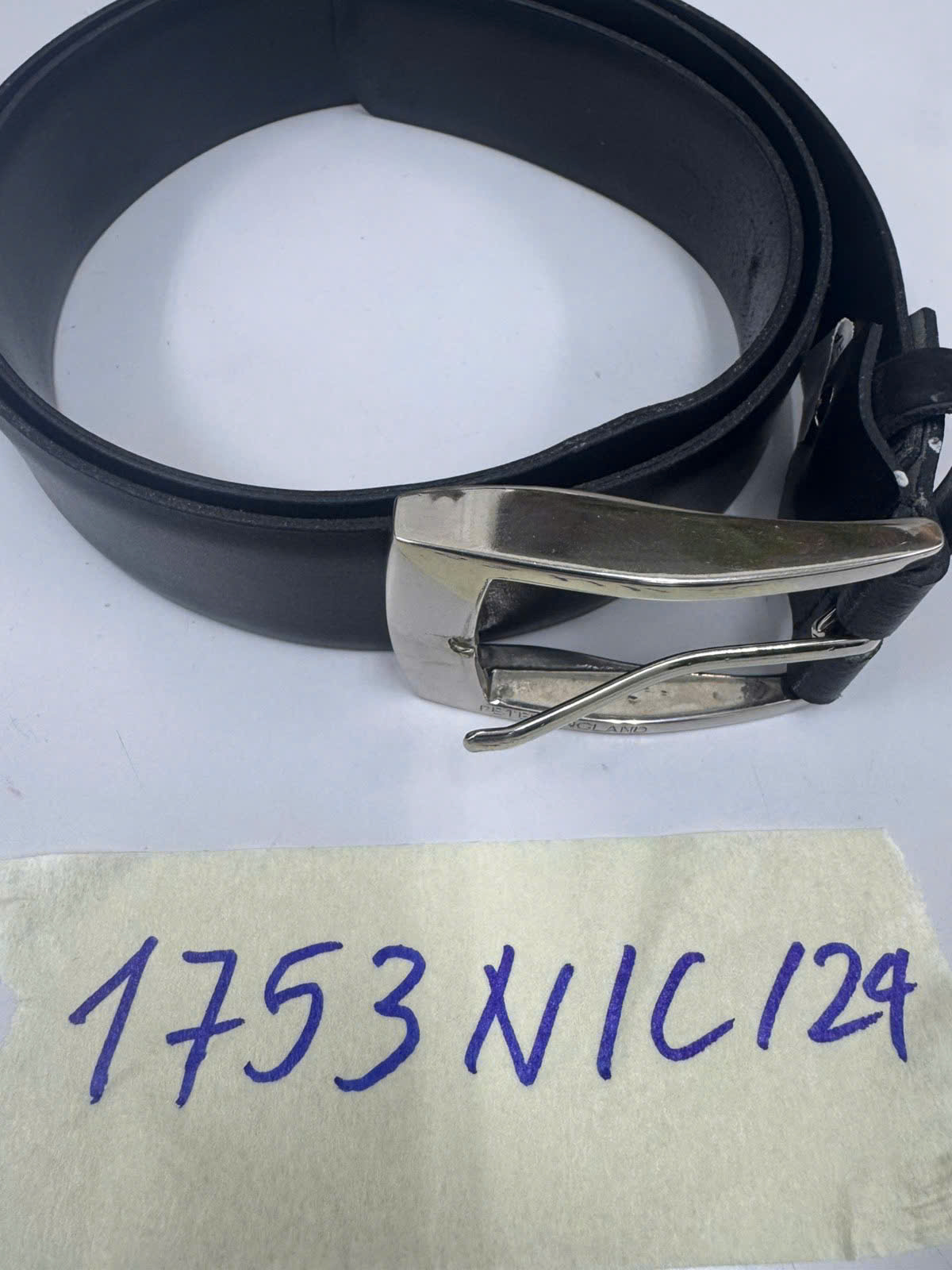 Ngày tiếp nhận: 13/10/2024 Mã hồ sơ: 1753N2024C Mô tả: 01 Thắt lưng da màu đen khóa màu trắng có ghi chữ "Peter England". |