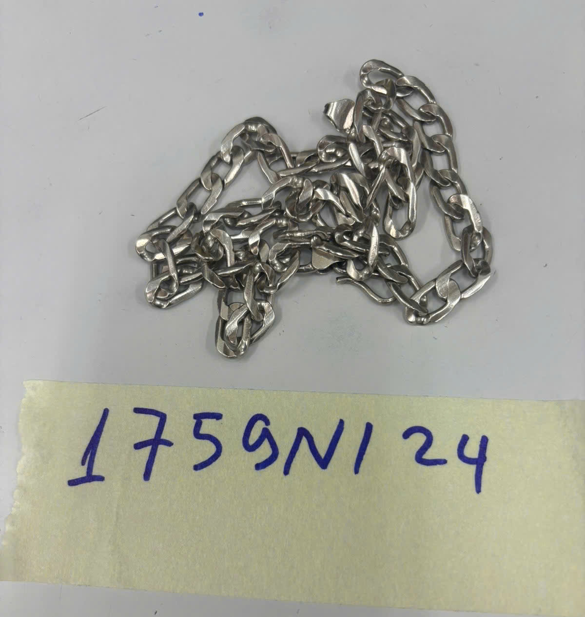 Ngày tiếp nhận: 14/10/2024 Mã hồ sơ: 1759N2024 Mô tả: 01 dây chuyền kim loại màu trắng. |