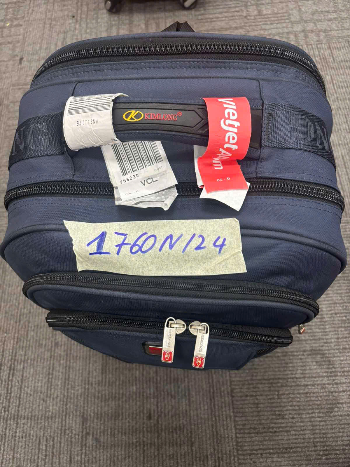 Ngày tiếp nhận: 14/10/2024 Mã hồ sơ: 1760N2024 Mô tả: 01 balo màu xanh có chữ KIMLONG gồm quần áo và vật dụng cá nhân qua sử dụng. |