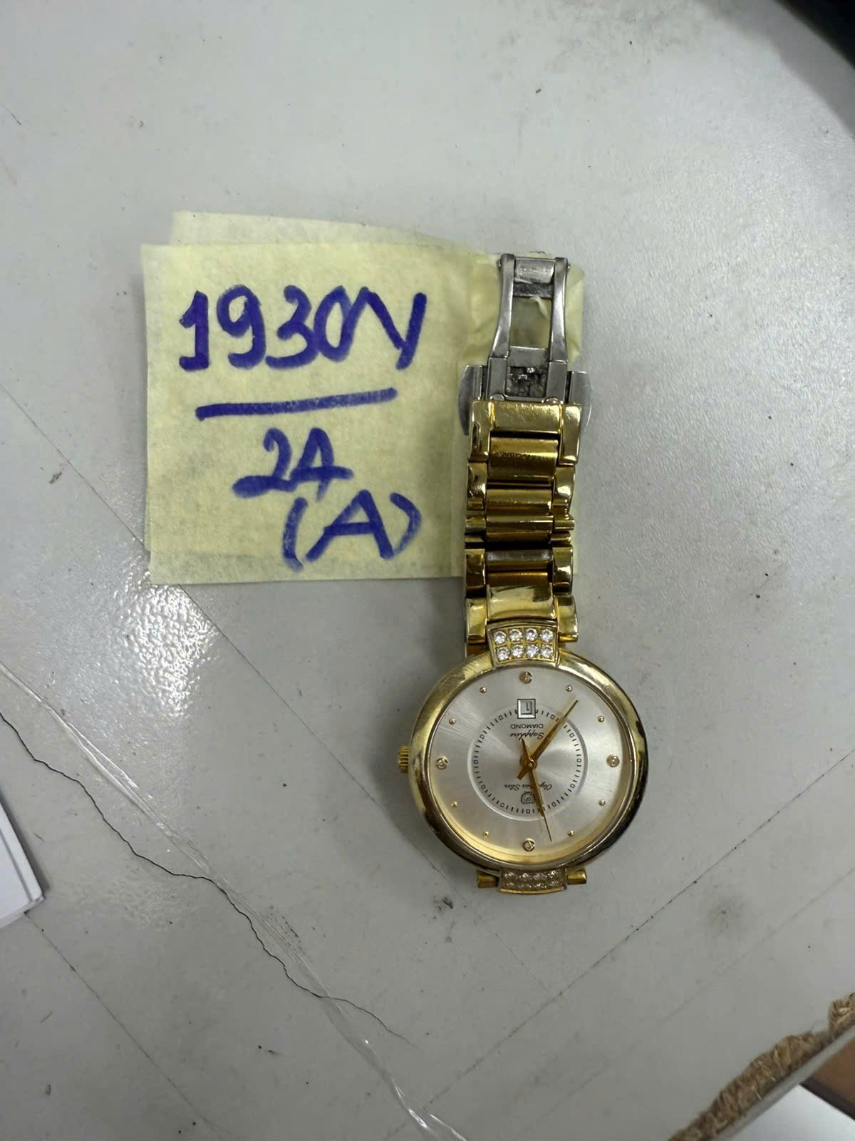 Ngày tiếp nhận: 12/11/2024 Mã hồ sơ: 1930N2024A Mô tả: 01 đồng hồ mặt tròn kim loại màu vàng, có chữ OLYMPIA STAR, mặt sau cá dãy số 28043L-205, dây đeo bằng kim loại màu vàng. |