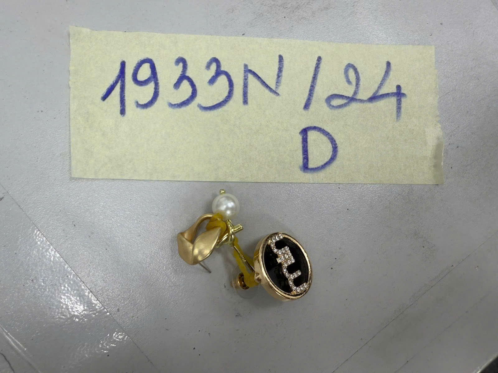 Ngày tiếp nhận: 12/11/2024 Mã hồ sơ: 1933N2024D Mô tả: 01 bông tai mặt tròn màu vàng đen, có chữ MIN đính đá, 01 (một) bông tai hình tam giác màu vàng, 01 (một) bông tai bằng kim loại màu vàng có gắn viên bi tròn màu trắng. |