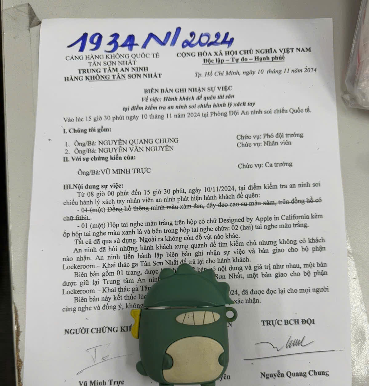 THỐNG KÊ TÀI SẢN, HÀNH LÝ CỦA KHÁCH ĐÁNH RƠI, BỎ QUÊN TỪ NGÀY 12/11/2024 ĐẾN NGÀY 14/11/2024