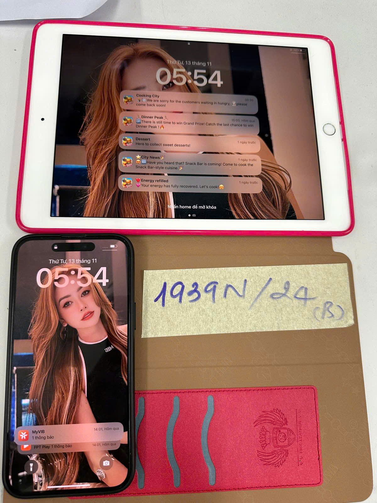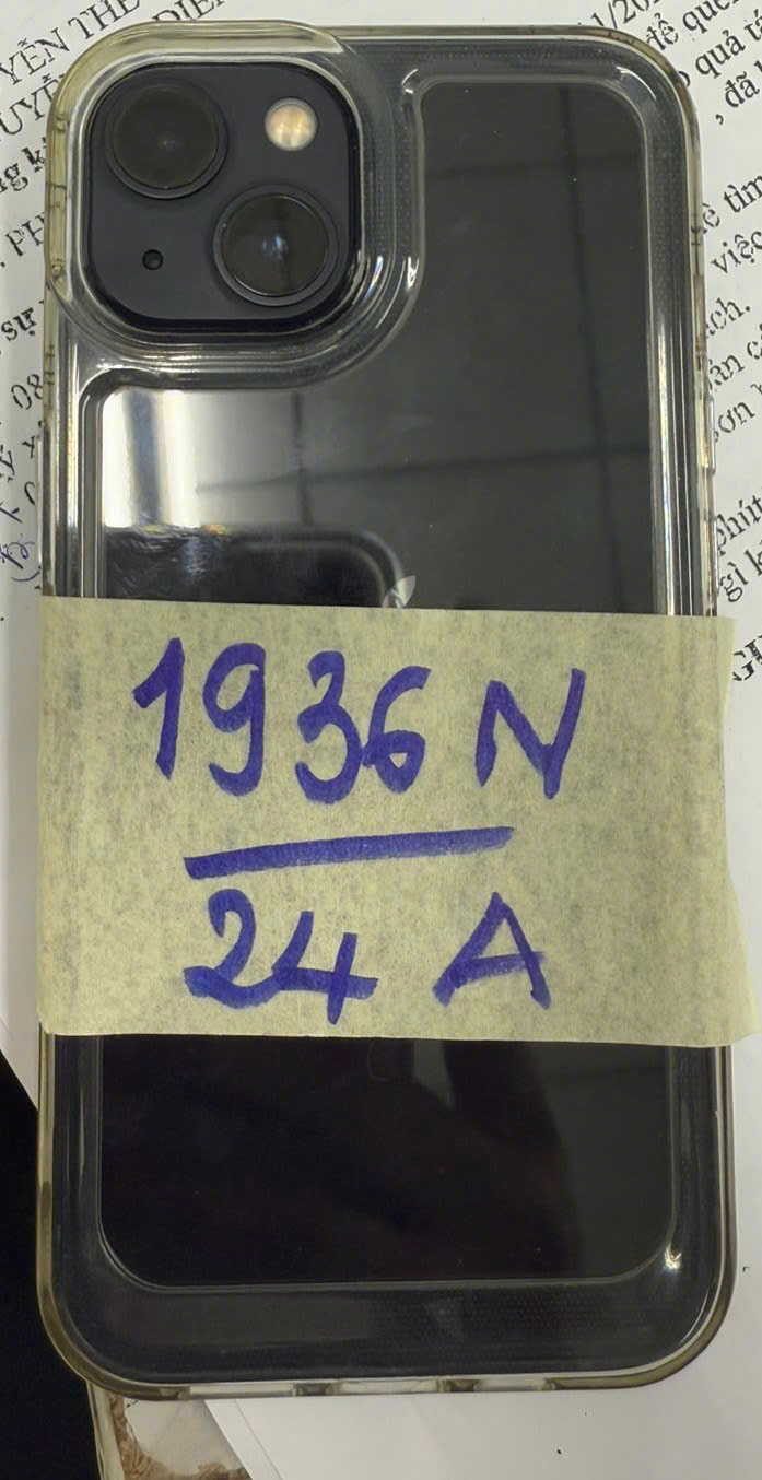 Ngày tiếp nhận: 12/11/2024 Mã hồ sơ: 1939N2024B Mô tả: 01 điện thoại có chữ IPHONE màu xanh đen, ốp màu đen + 01 máy tính bảng màu trắng, ốp màu đỏ. |
