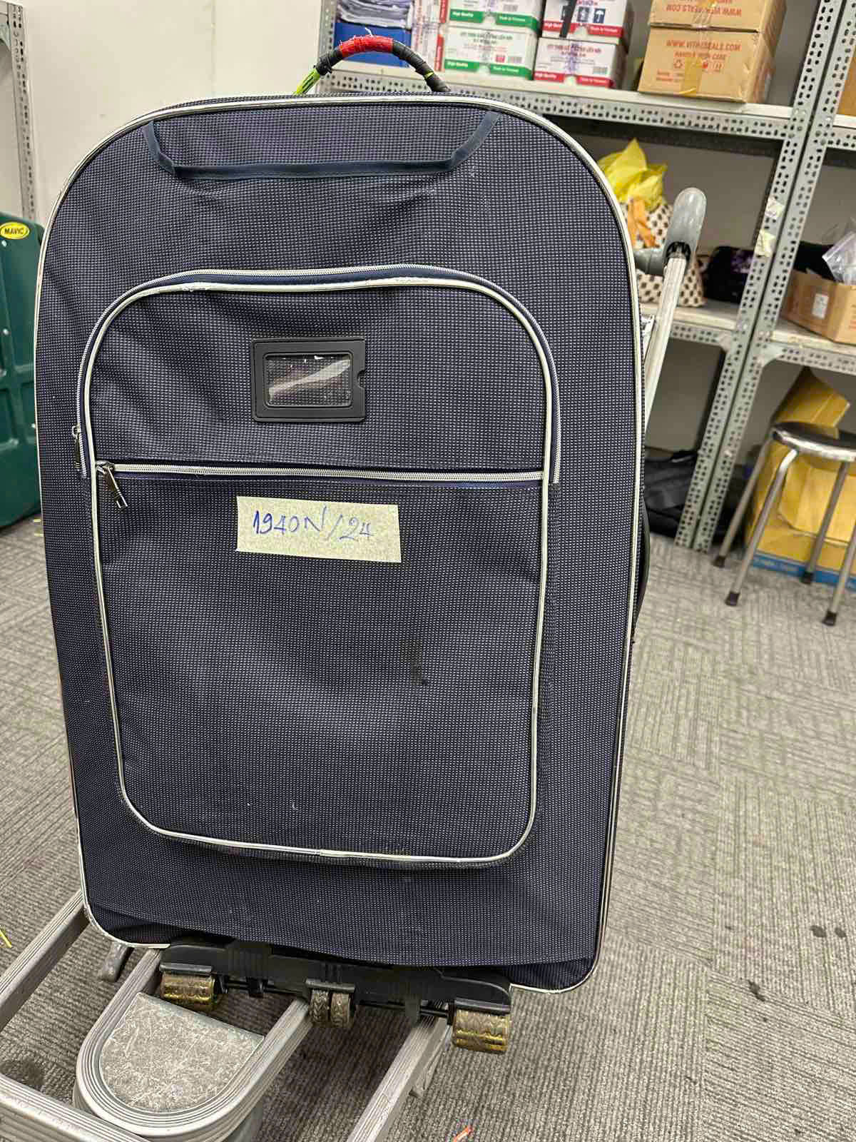 Ngày tiếp nhận: 12/11/2024 Mã hồ sơ: 1940N2024 Mô tả: 01 valy màu xanh sẫm bên trong có quần áo vật dụng cá nhân đã qua sử dụng. |
