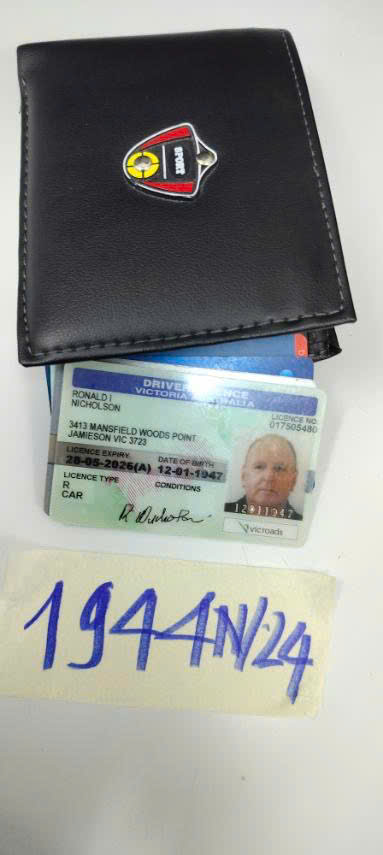 Ngày tiếp nhận: 13/11/2024 Mã hồ sơ: 1944N2024 Mô tả: 01 ví da có 01 tờ 05 (năm) AUD và 01 GPLX RONALD NICHOLSON. |
