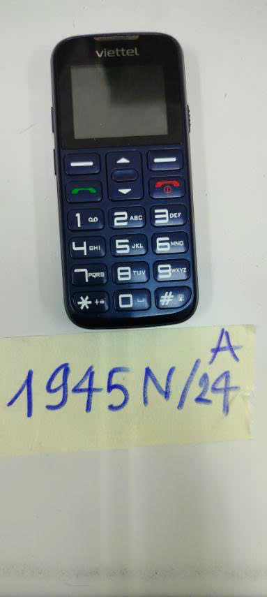 Ngày tiếp nhận: 13/11/2024 Mã hồ sơ: 1945N2024A Mô tả: 01 điện thoại phím màu xanh VIETTEL. |